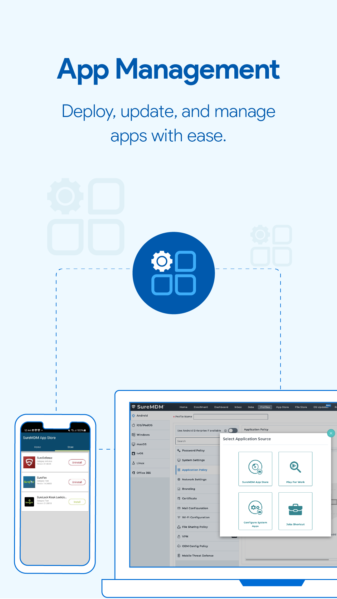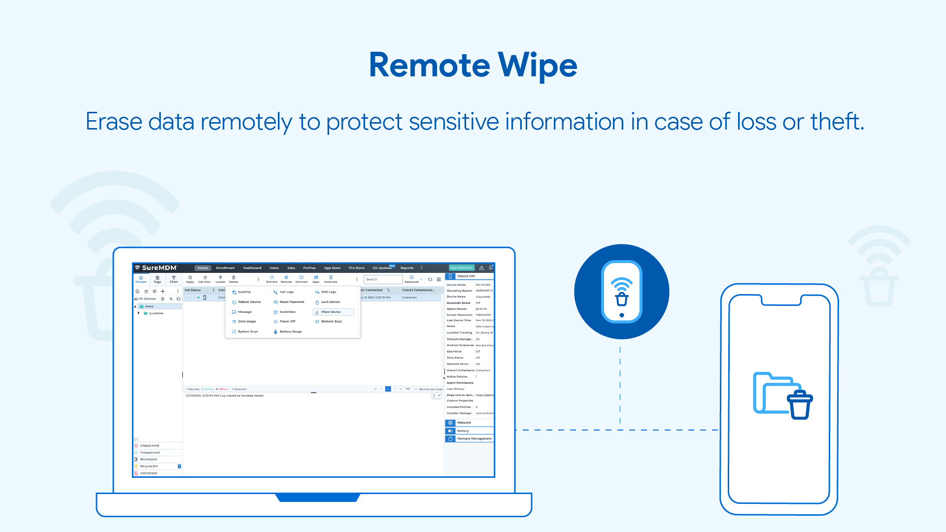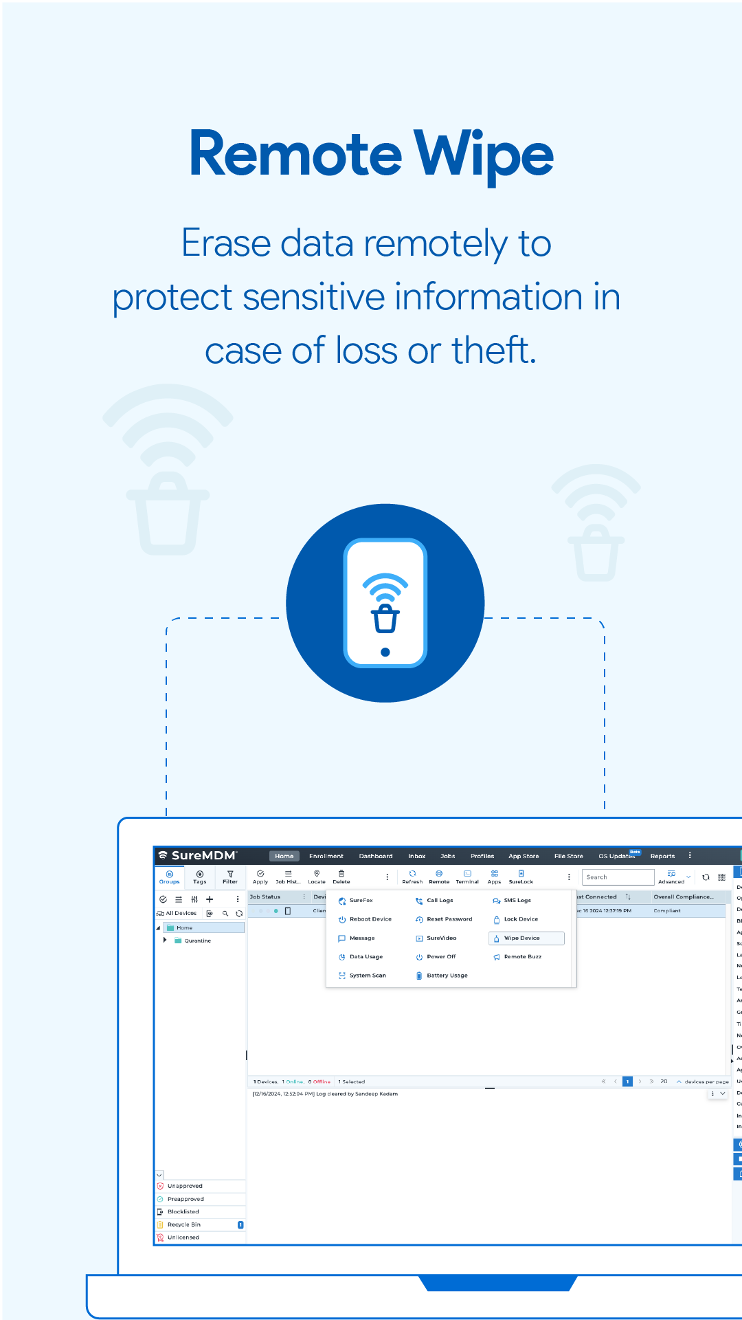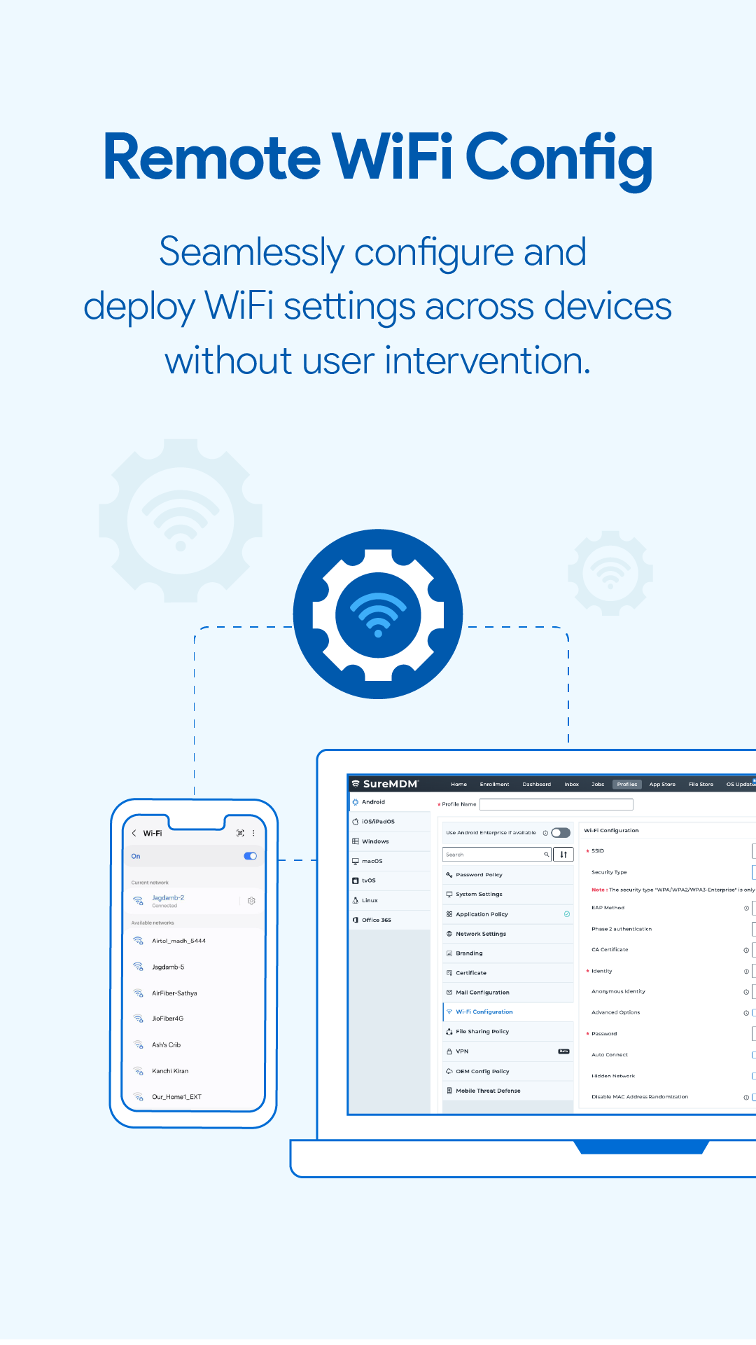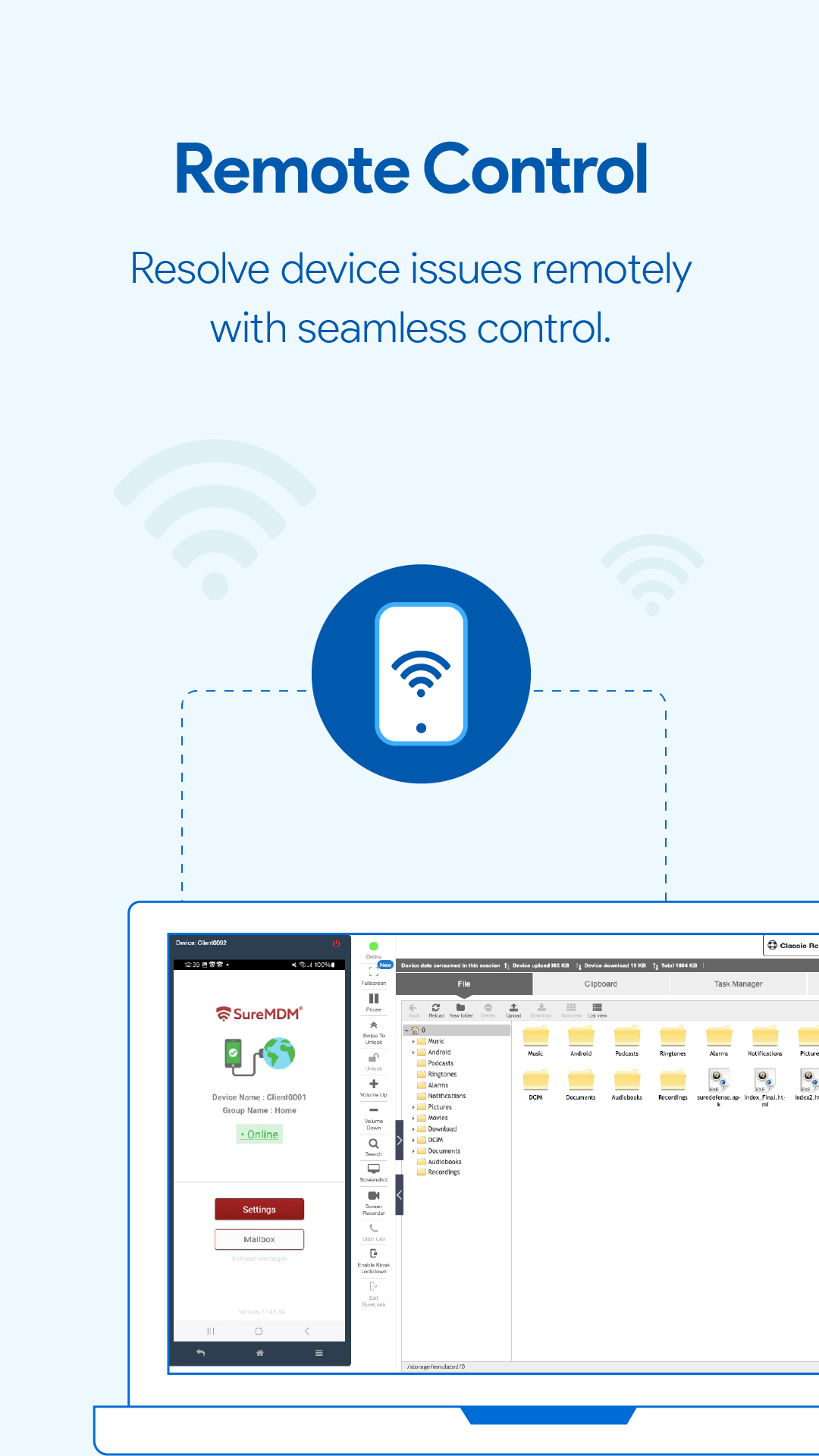 > Remote Device Management: Secure and oversee devices from afar, from setting up apps to enforcing policies and conducting troubleshooting.