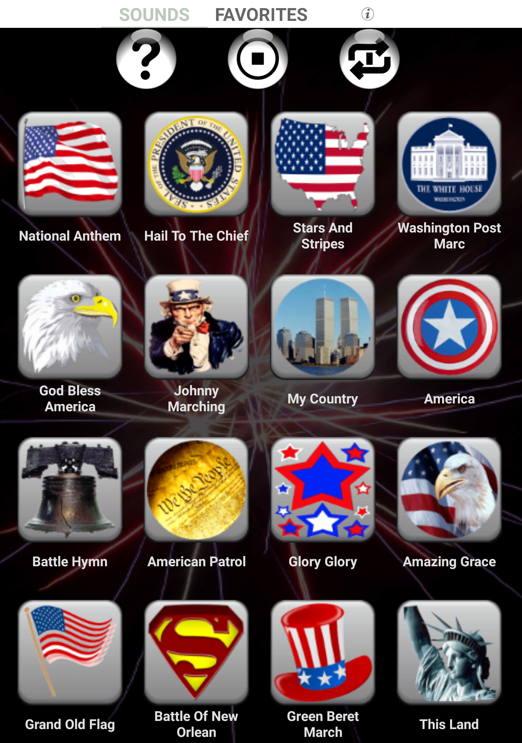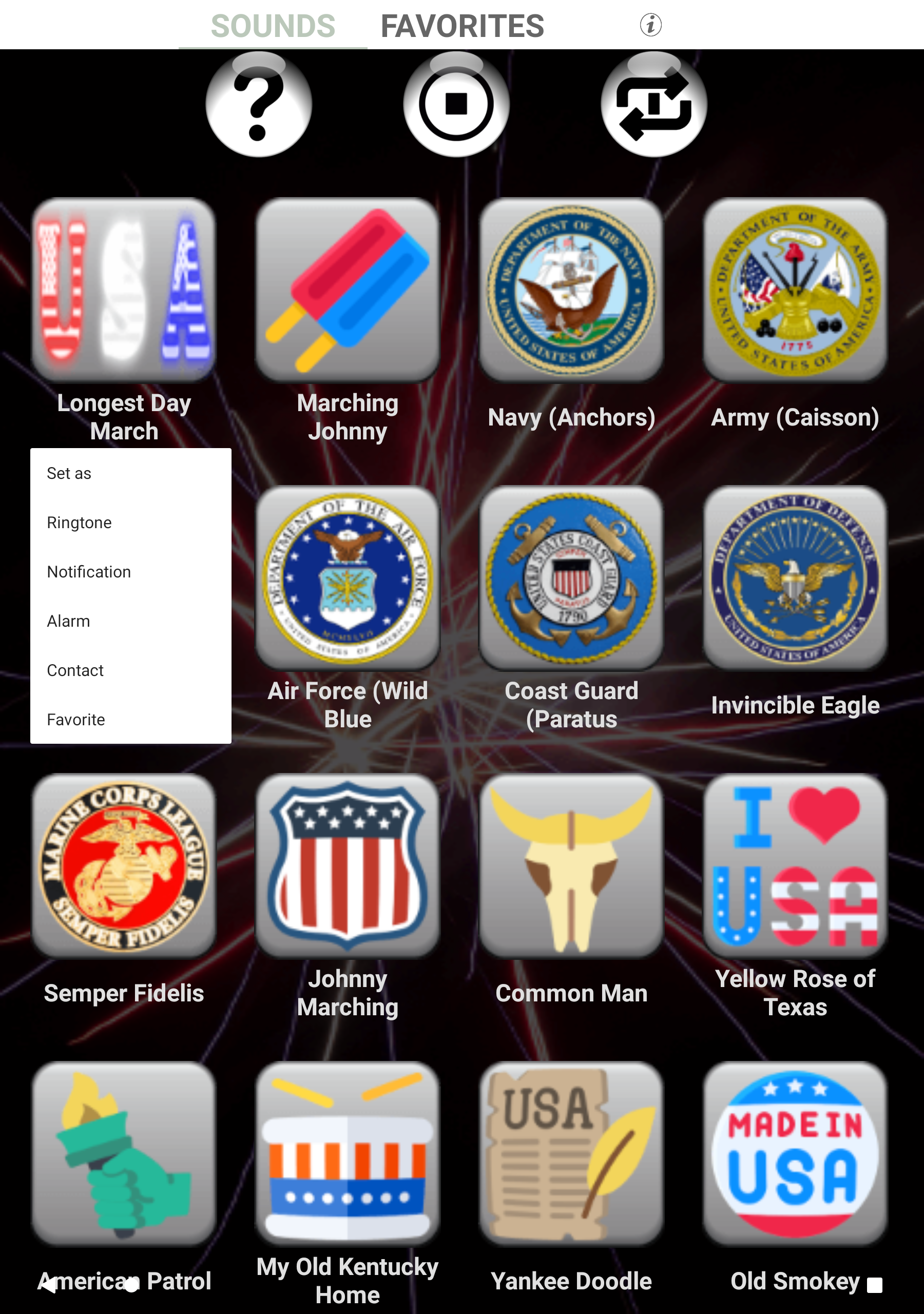 Celebrate your love for America with Patriotic American Ringtones - the ultimate app for showcasing your patriotic spirit and personalizing your device with over 70 iconic American tunes. From military anthems to traditional folk songs, this app offers a wide variety of sounds to choose from. Easily preview and set your favorite melodies as ringtones, notifications, alarms, or even assign them to individual contacts. With additional features like a sound randomizer and ambient timer, you can fully immerse yourself in the rich tradition of American music. Don’t settle for boring tones - download Patriotic American Ringtones today and make a statement wherever you go!