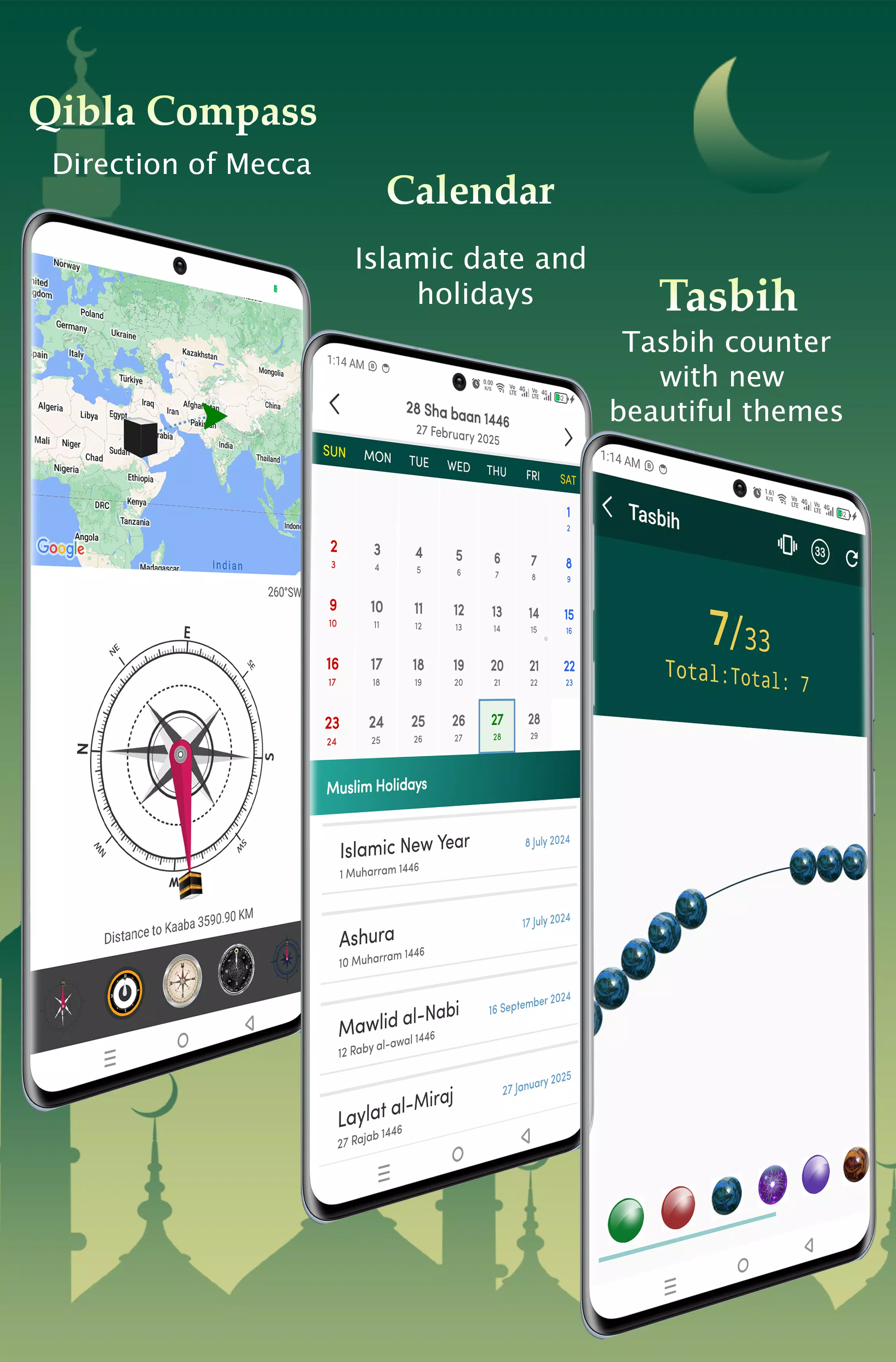 ⭐ Utilize the Qibla Compass feature to navigate your prayers and find the direction of the Kaaba from anywhere in the world.