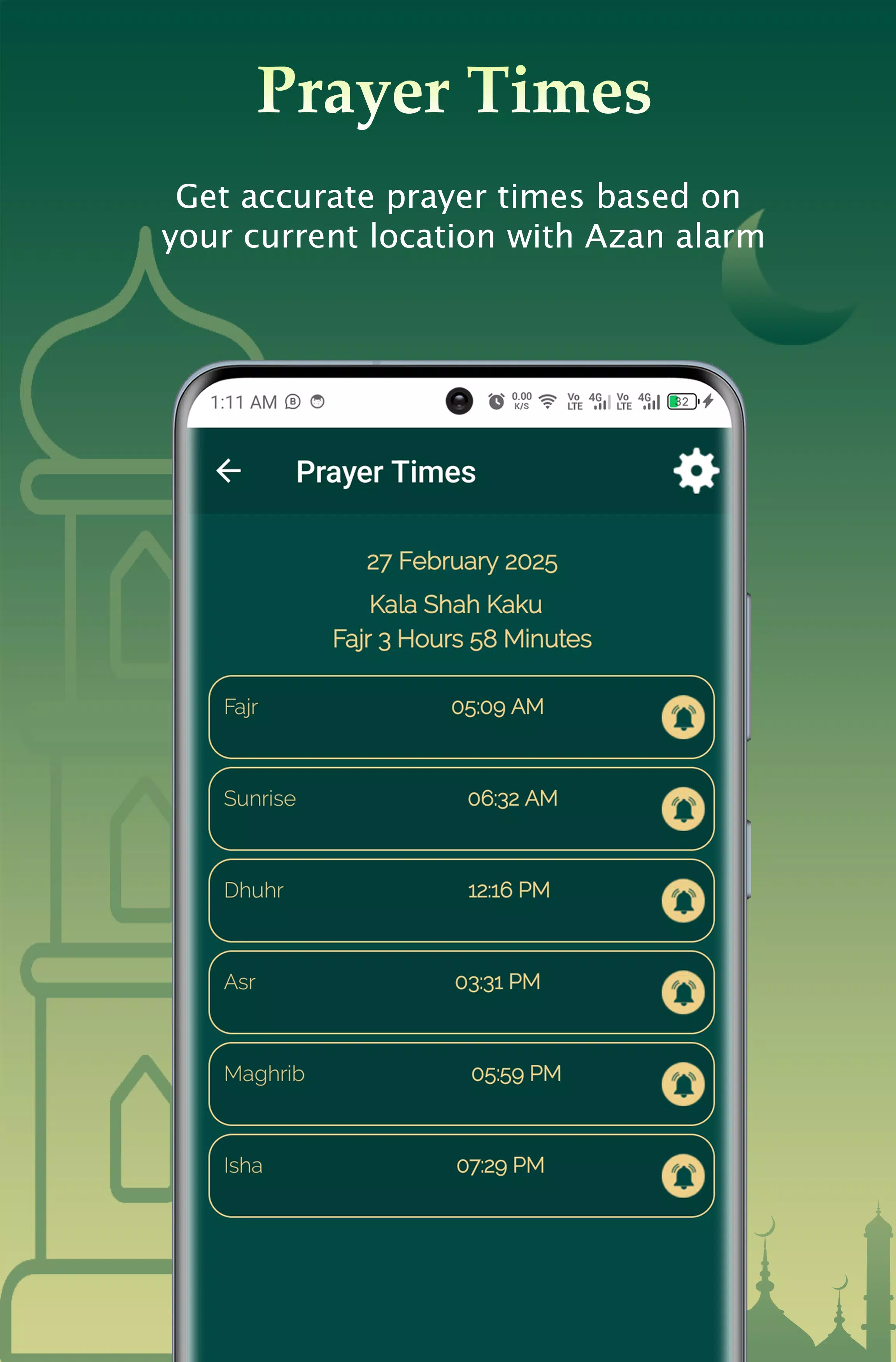 ⭐ Prayer Times with Auto Adhan Alarm: Never miss a prayer again with accurate prayer times based on your location and an auto Adhan alarm that reminds you when it's time to pray, helping you stay connected to your faith throughout the day.