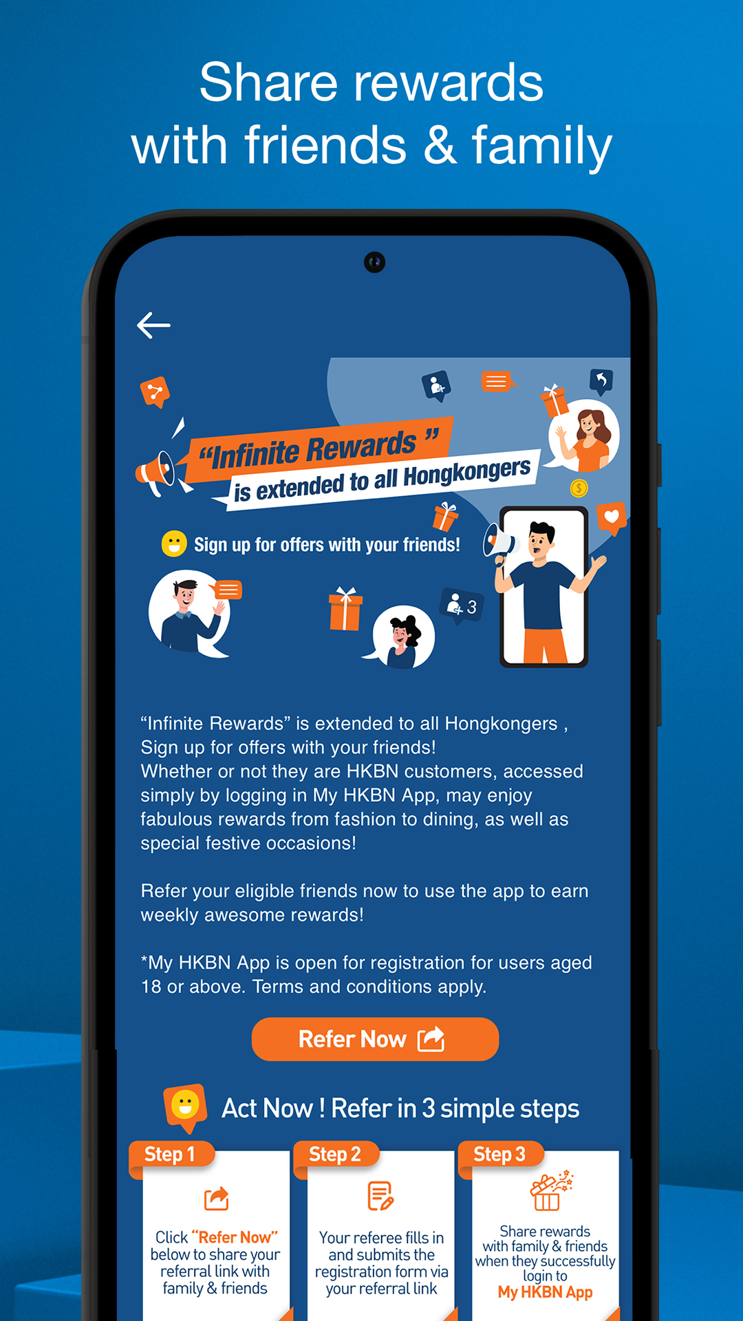 - Take advantage of the "Refer a Friend" program to earn rewards by inviting friends to sign up for HKBN services.