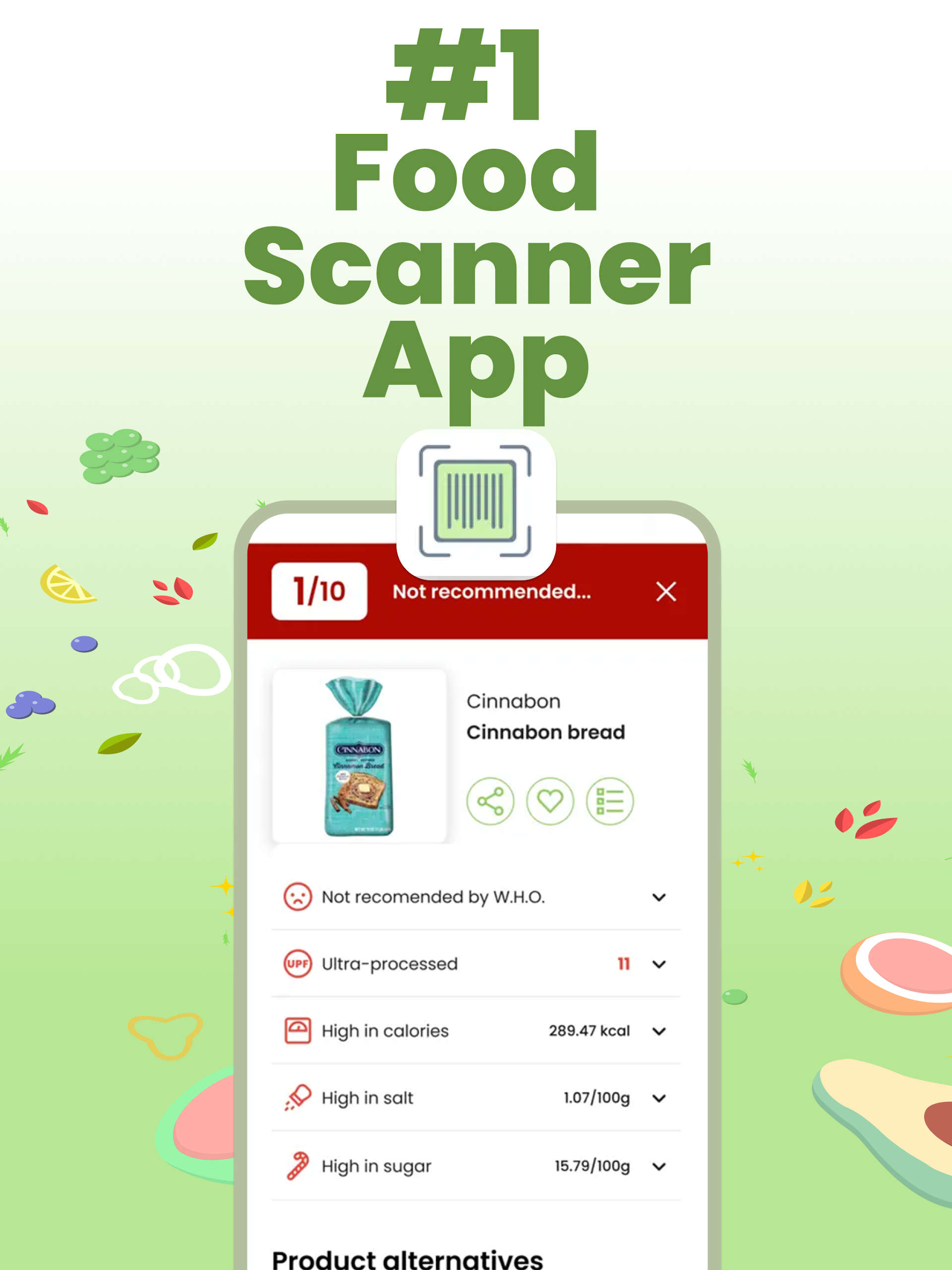 - Healthy Food Scale: Quickly scan products to assess their healthiness on a scale of 1 to 10 according to WHO guidelines.