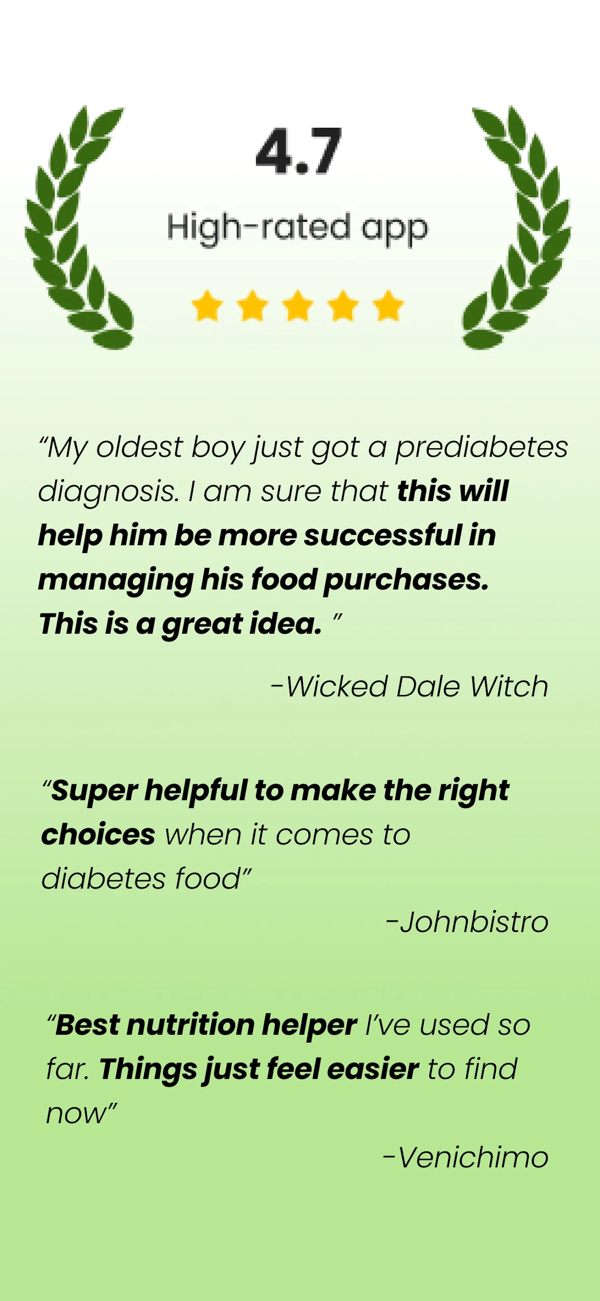 - Blood Sugar Alert: Determine if a product is suitable for those with type 2 diabetes and prediabetes.