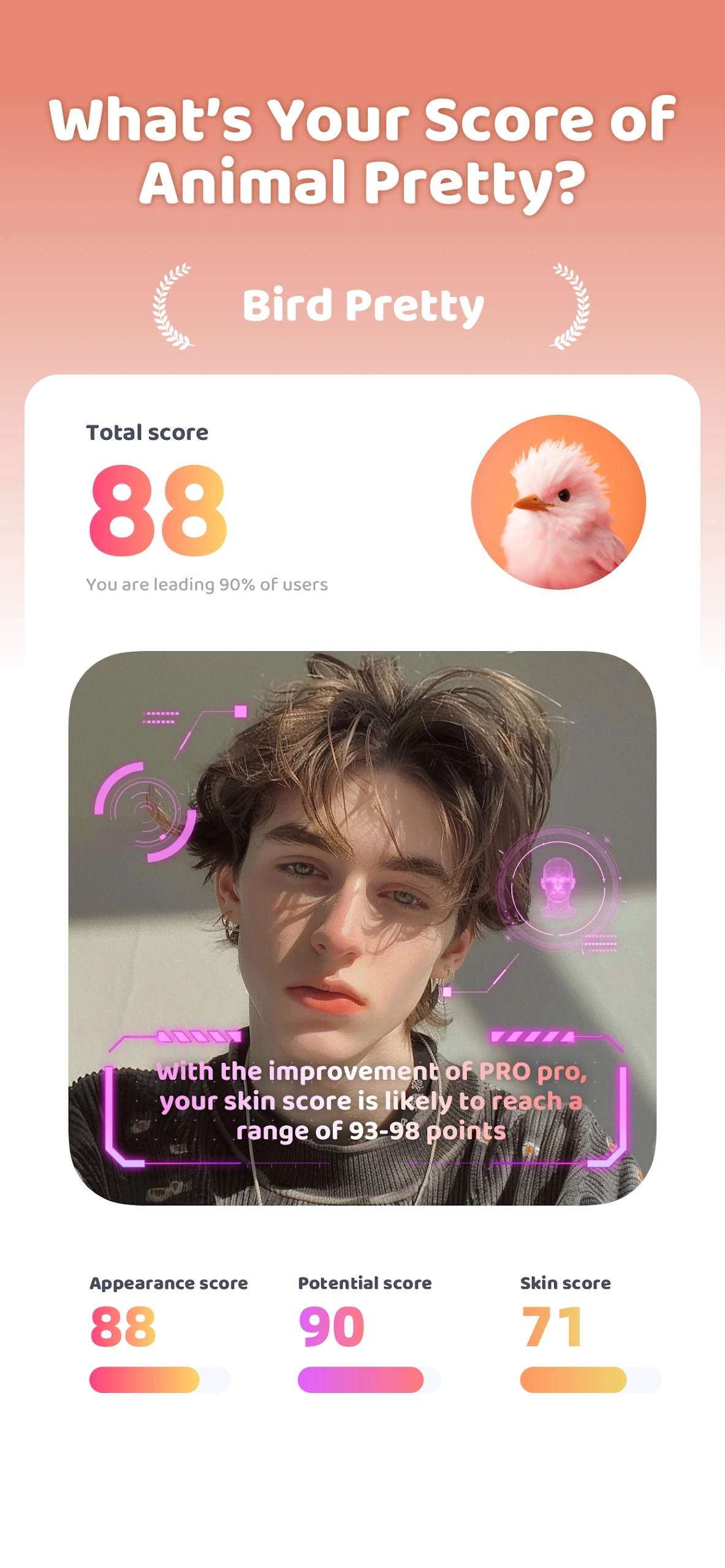 AnimalFace offers a fun and interactive experience for users of all ages. It allows you to explore the animal kingdom through the lens of your own appearance. The app uses revolutionary AI technology to provide an immediate face rating and attractiveness evaluation. You will receive personalized beauty recommendations to help boost your confidence and enhance your natural appeal. With entertaining features like discovering your spirit animal and adopting a virtual pet, it is more than a camera app. AnimalFace is your ultimate partner for beauty and self improvement.