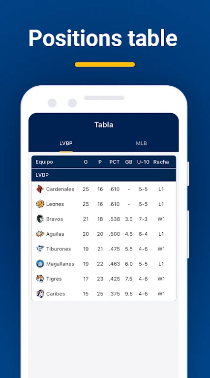 Positions Table: Stay informed about the current standings and positions of all teams in the Venezuelan Professional Baseball League and Major League Baseball with the Positions Table feature.