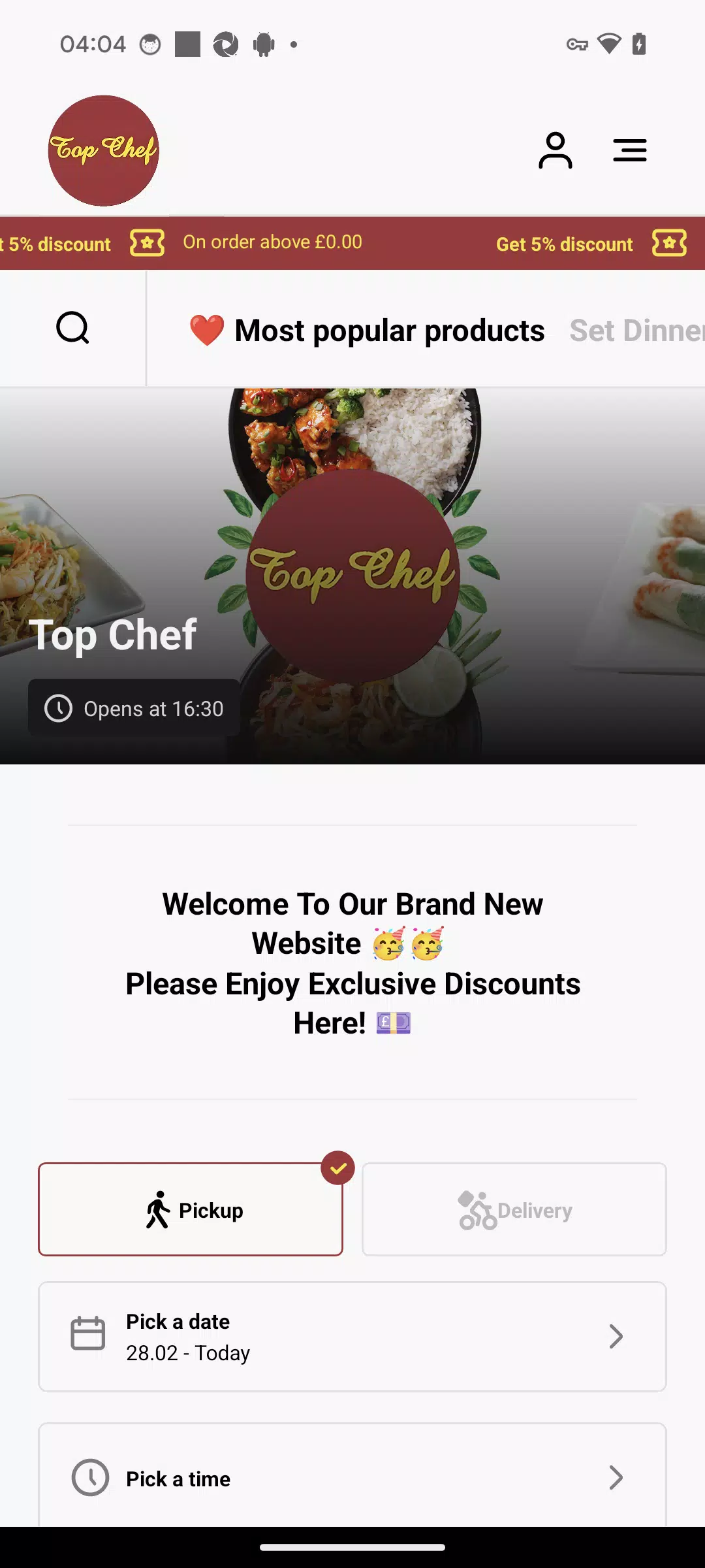 Satisfy your cravings with the convenience of quick and easy food ordering with the Top Chef app! Say goodbye to the hassle of searching for printed menus or dealing with busy phone lines - now you can order directly from your phone in just a few simple steps. Choose from a variety of mouth-watering meals, customize your order to your liking, and select a pick-up or delivery time that works best for you. With secure online payment options and the ability to support your favorite local restaurants, ordering food has never been easier. Download the Top Chef app today and enjoy the benefits of convenient, stress-free takeaway ordering right at your fingertips!