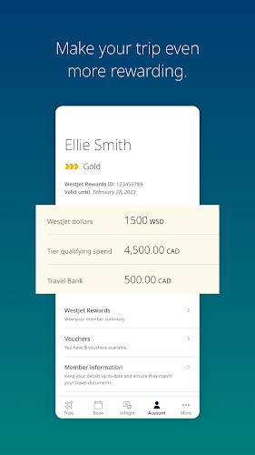 Join the WestJet Rewards program and reap the benefits of flying with the airline. Track your tier status, WestJet dollars, available vouchers, and travel bank balance directly through the app. Make your travel experience even more rewarding with this seamless integration.