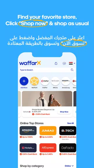 Seeking to revolutionize the way you shop and save money, WaffarX is your ultimate cashback companion! With an extensive range of offers, discounts, and coupons from your favorite retailers, this innovative app lets you earn cash back on your online and in-store purchases effortlessly. Whether you're looking for deals on electronics, fashion, food, or travel, WaffarX has got you covered with its user-friendly interface and exclusive promotions. Simply search for your preferred store or explore the various deals available, and start saving today! With easy cash withdrawal options every three months, WaffarX is the go-to platform for savvy shoppers. Download now and experience the thrill of cashback rewards!