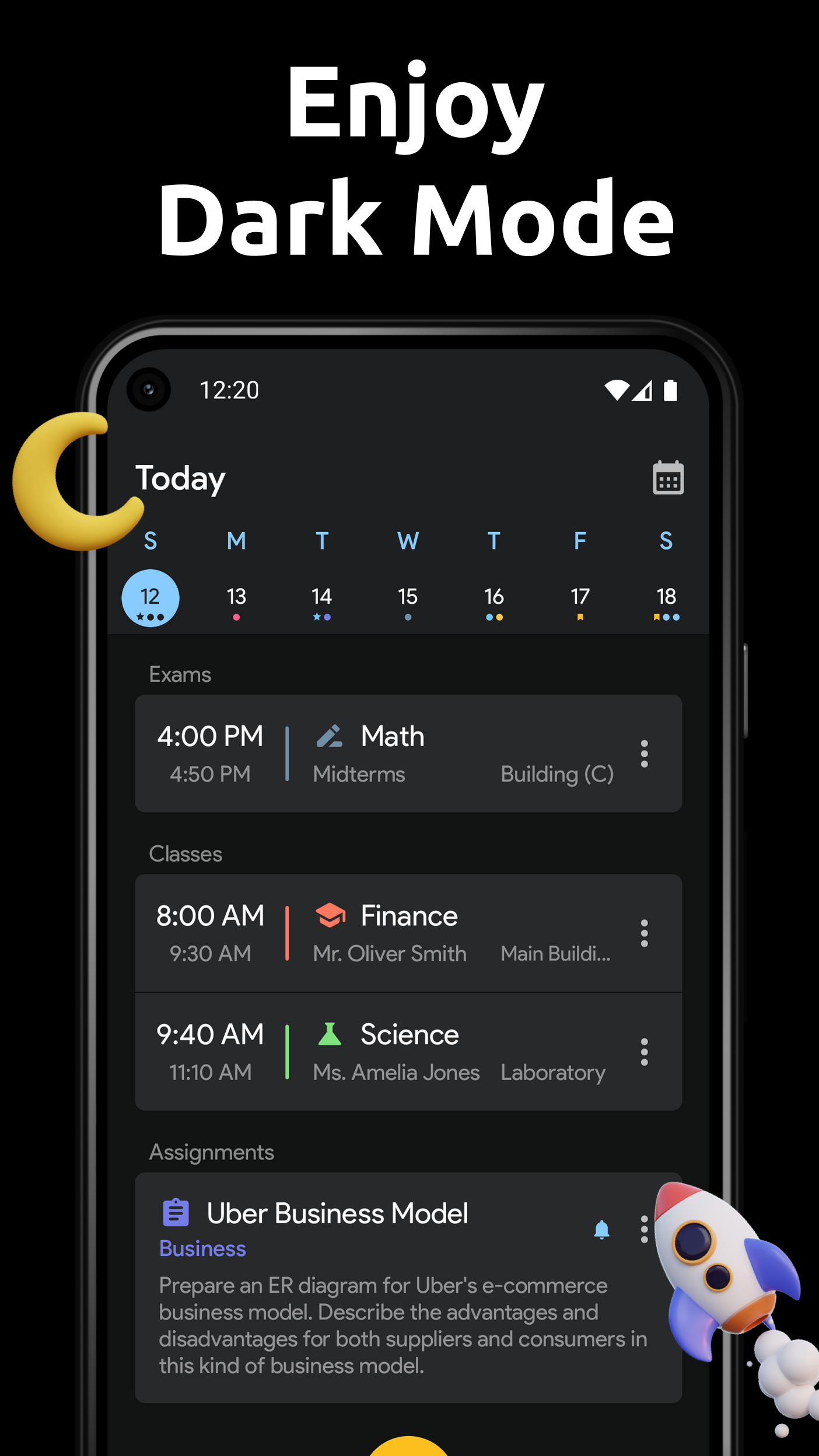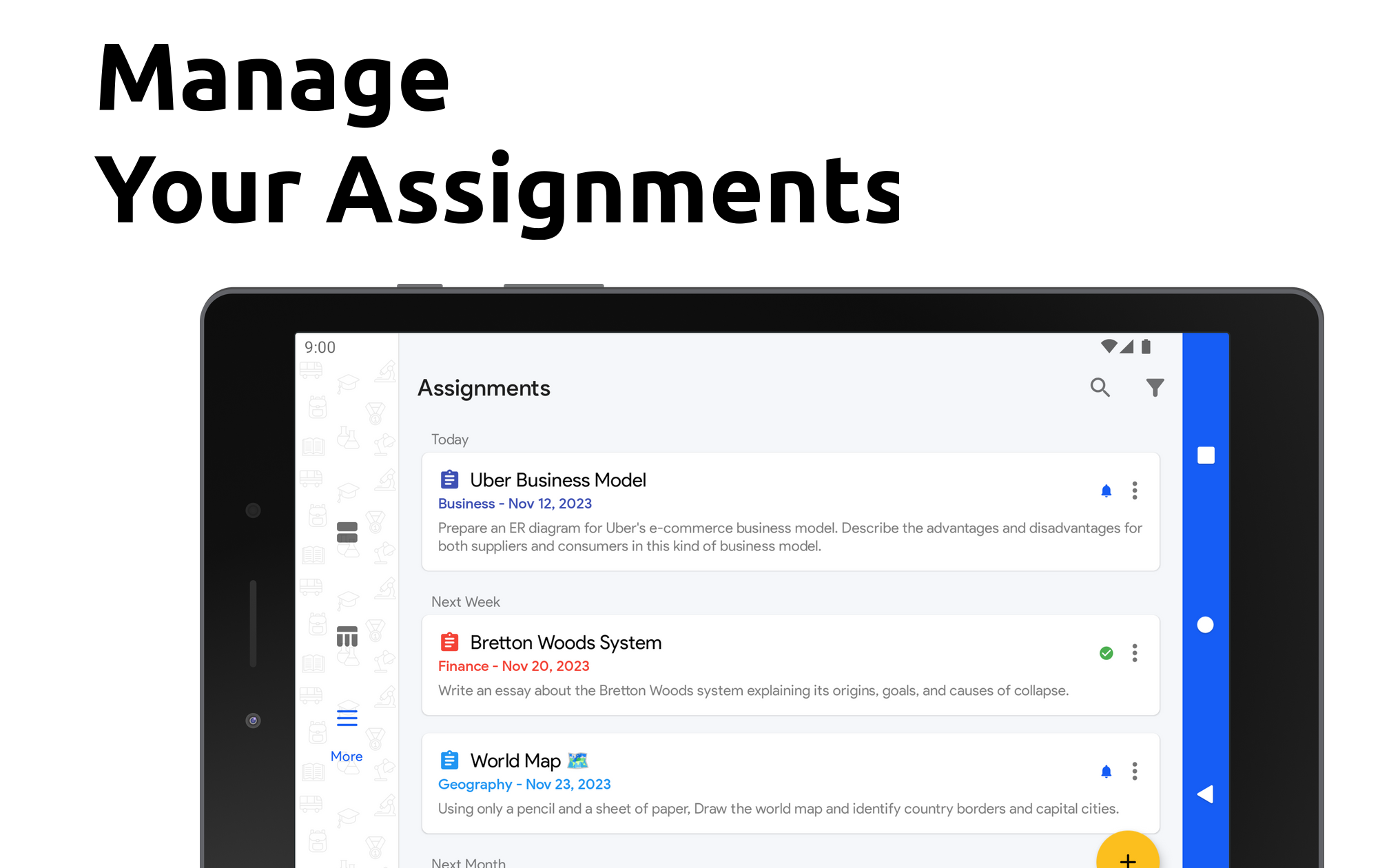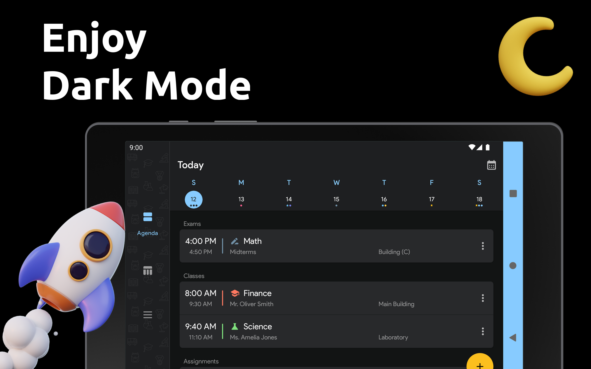 With School Planner, you can easily create and manage your classes, assignments, and exams all in one place. The Agenda feature displays your daily schedule, allowing you to handle events and make changes as needed.