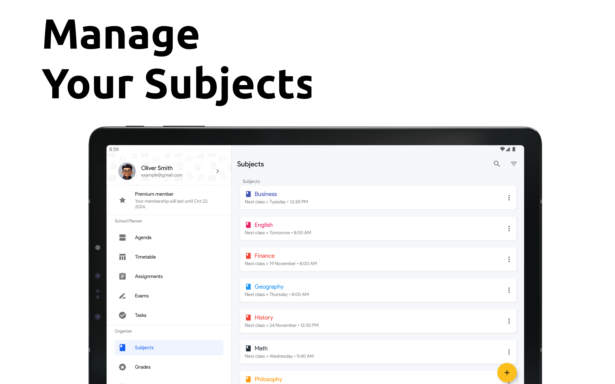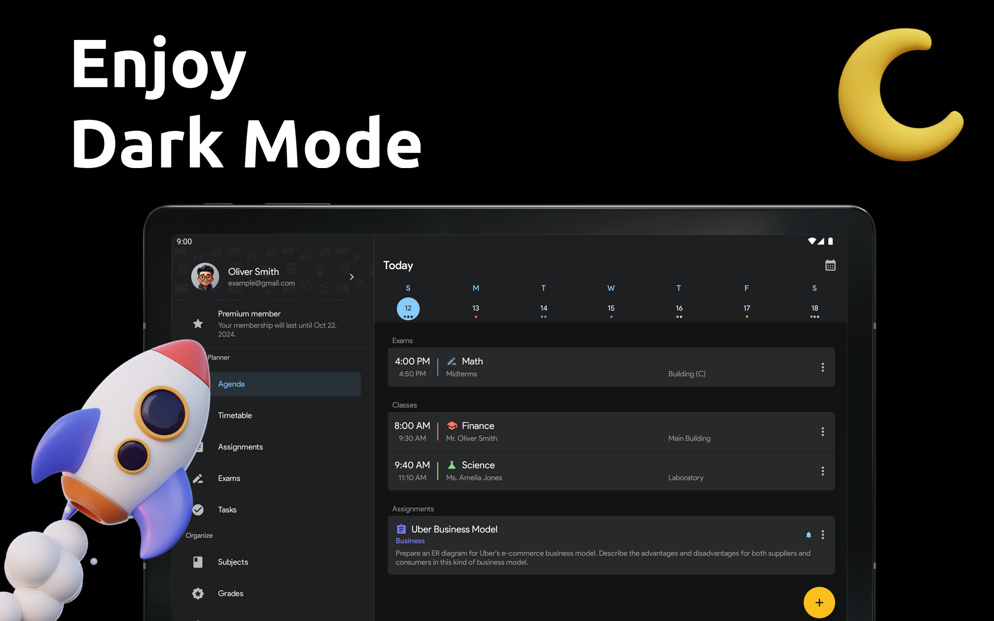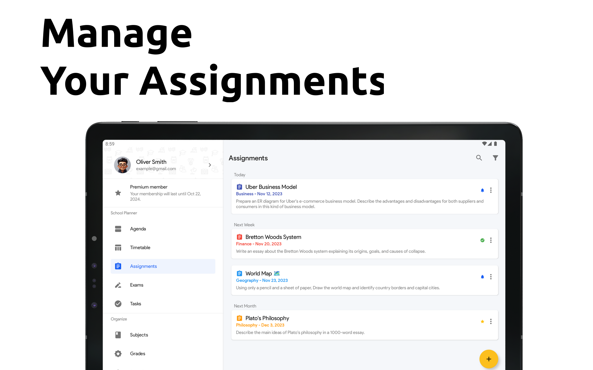With School Planner, you can easily create and manage your classes, assignments, and exams all in one place. The Agenda feature displays your daily schedule, allowing you to handle events and make changes as needed.