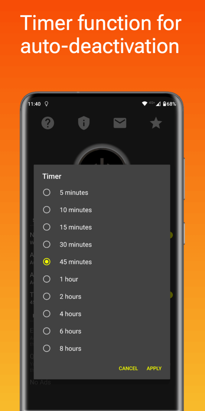 Timer Functionality: Use the timer feature for automatic deactivation based on your preferences.