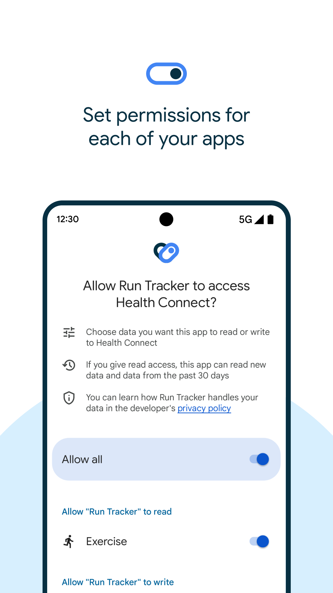 * How does Health Connect protect my privacy?: Health Connect ensures your privacy by giving you complete control over which data is shared with each app. You can review and adjust these settings at any time.