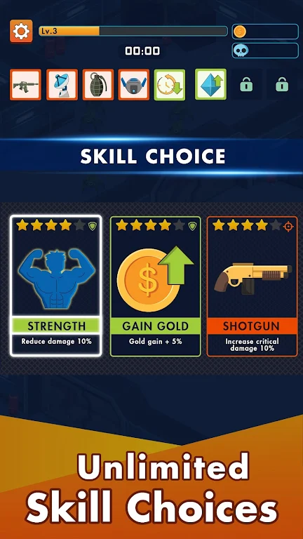 Claim rewards and coins to upgrade your weapons.