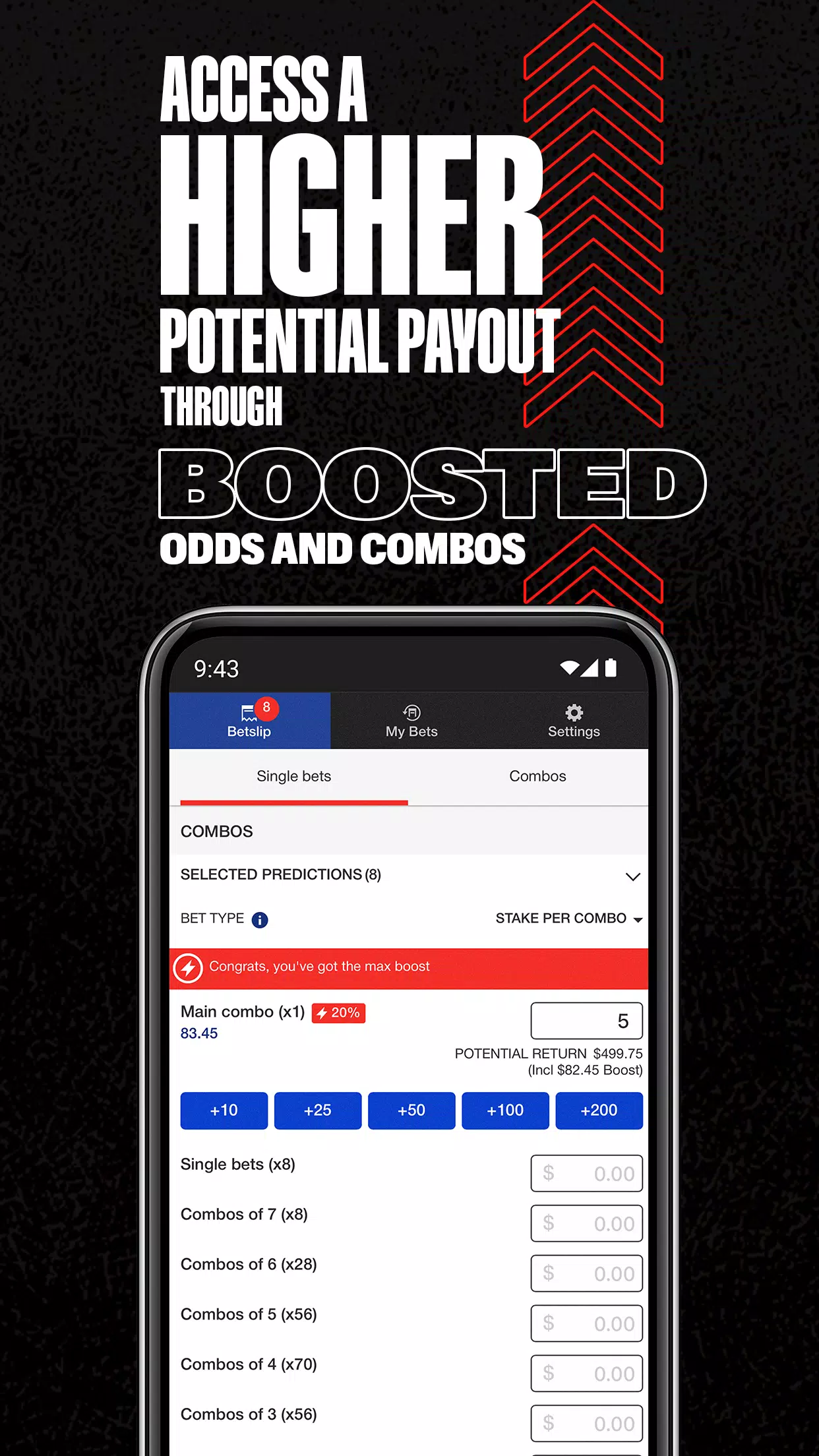 - Boosted odds and combos: Increase your potential winnings without having to risk more money.