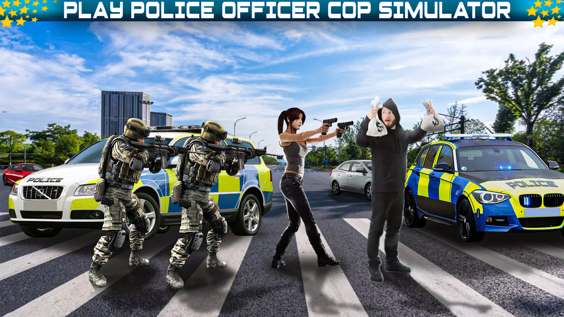 > Strategic Maneuvers: Employ smart tactics and call for backup to outsmart criminals and bring them to justice in this cops simulator game.