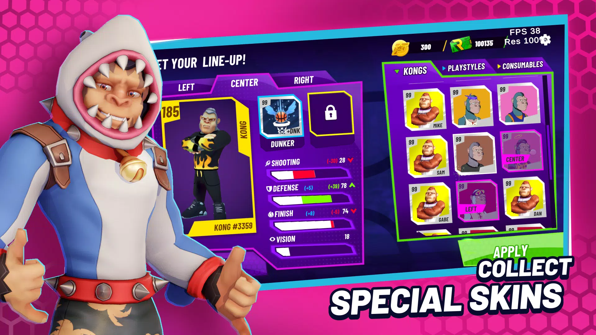 Get ready to slam, jam, and dominate the courts in the ultimate 3v3 basketball showdown with Rumble Kong League! Experience fast-paced arcade basketball action like never before as you master unique skills, unleash special moves, and gather powerful items to make your team unstoppable. With simple controls, challenging gameplay, and on-fire mode, you'll be pulling off stylish dunks and epic counters in no time. Build your dream team of Kongs, compete in leagues for rewards, explore Athlos City for quests, and unlock exclusive content with the Rumble Pass. Join the league, rise to the top, and become a Rumble Kong League star!