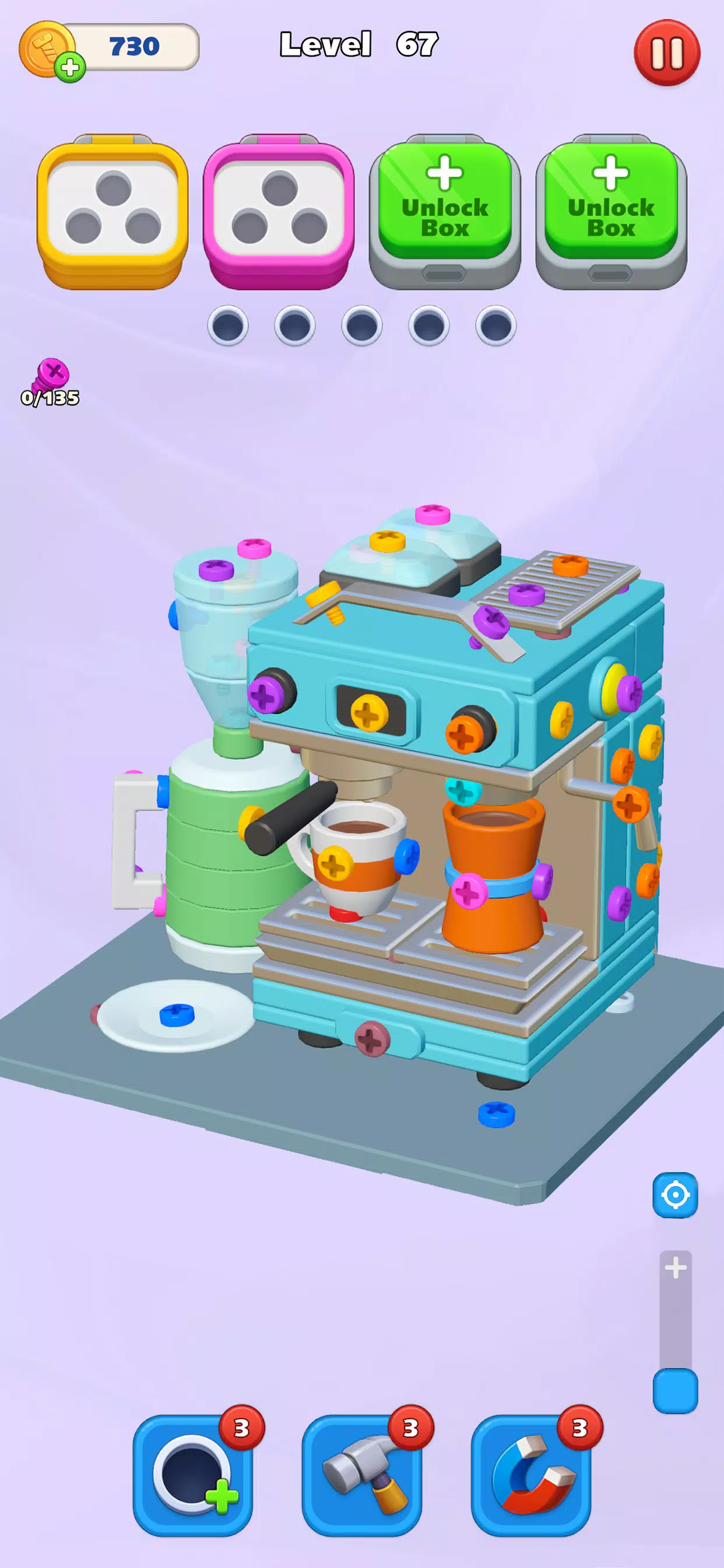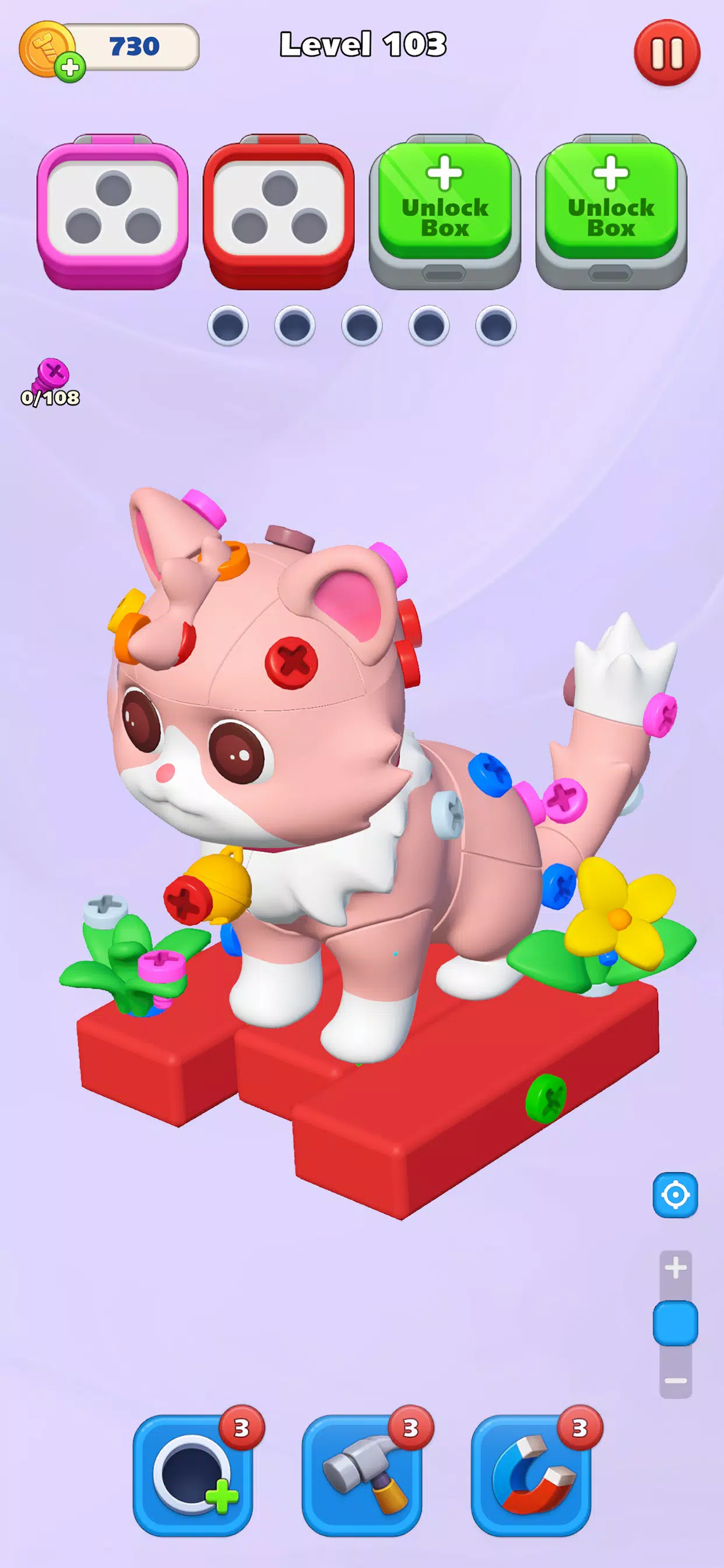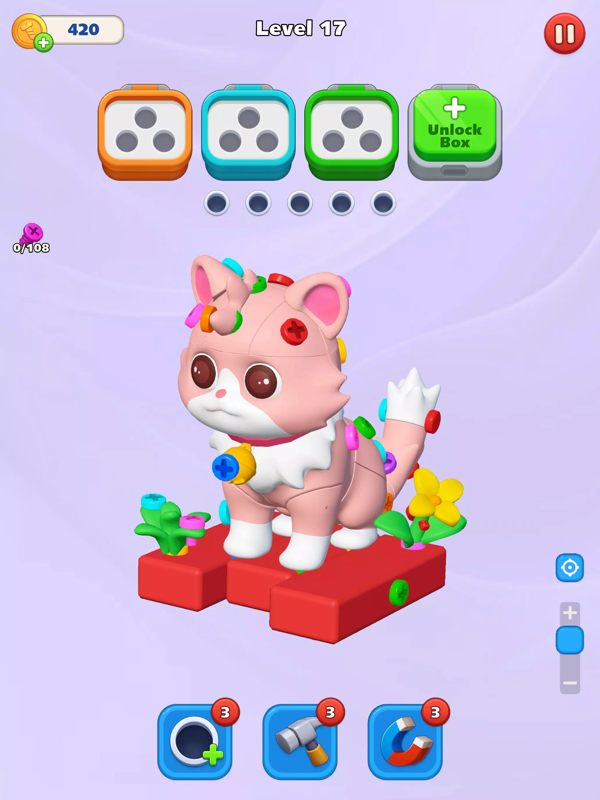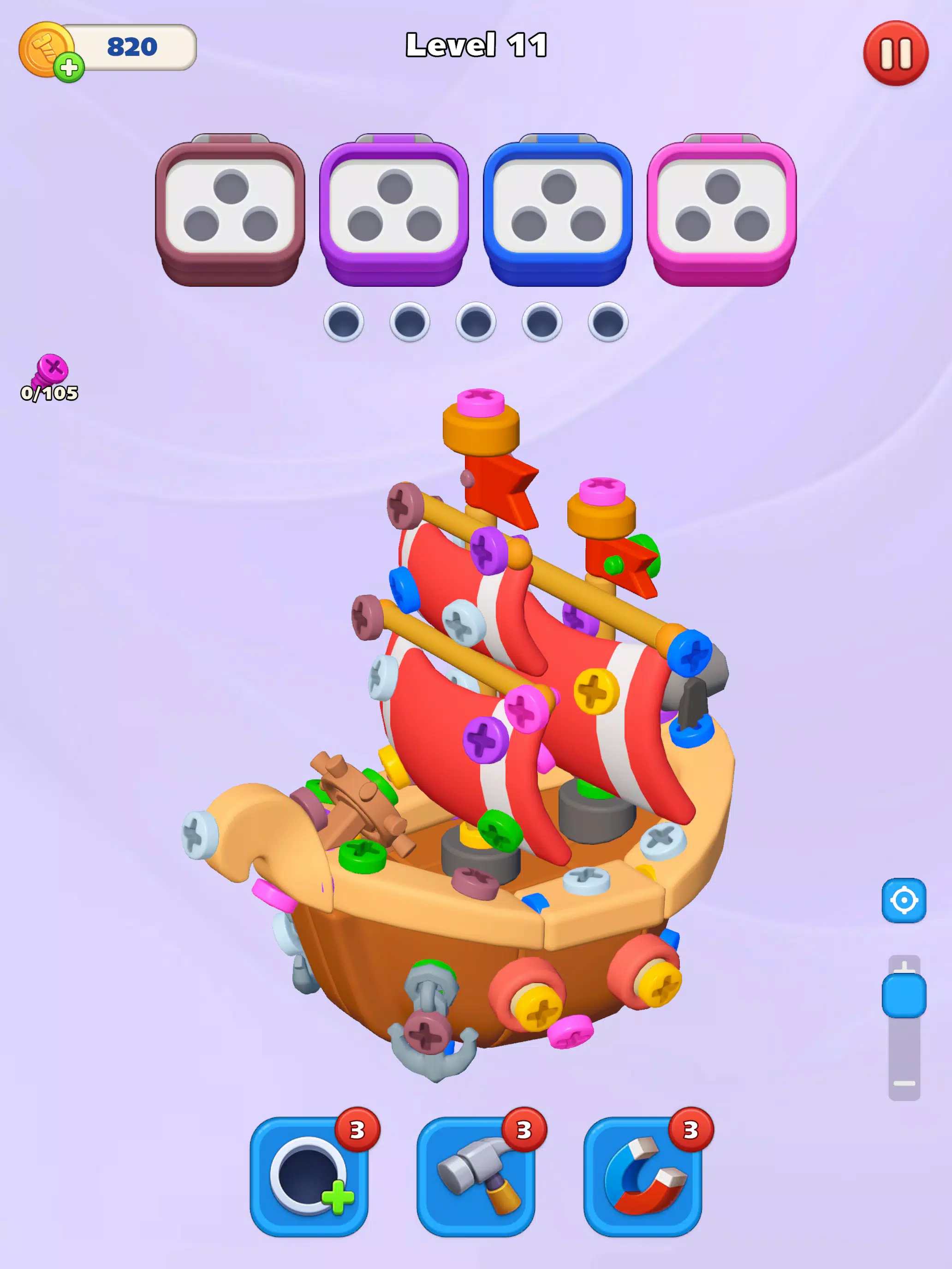 - Innovative Design: The game's 3D deconstruction dynamics provide an immersive experience that transports players into a world of intricate screw puzzles. With its revolutionary game design, "Bolts off" stands out as a unique and creative addition to the puzzle genre.