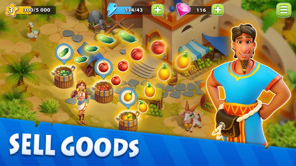 Embark on a thrilling journey to the Nile Valley in this captivating farm simulation game that takes you on an adventure through Ancient Egypt! Follow the story of Asibo and Amisi, a young couple facing unexpected challenges after a storm disrupts their honeymoon. Help them build their dream farm, raise animals, and explore breathtaking ancient landscapes. Complete quests, meet new characters, and unlock new territories as you unravel the mysteries of this fascinating time period. With unique storylines, fun quests, and exciting adventures at every turn, this game promises hours of entertainment and discovery. Join the family farm adventure in the Nile Valley: Farm Adventure today!