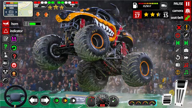 ⭐ Realistic Gameplay: The game provides a realistic monster truck driving experience with sound effects of crushing obstacles and challenging stunt tracks, making players feel immersed in the action.