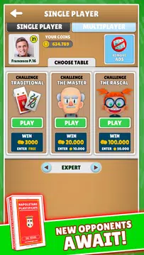 Experience the classic Italian card game of Asso Piglia Tutto like never before with the original Asso Piglia Tutto Dal Negro app! Immerse yourself in the tradition and nostalgia of playing with authentic Dal Negro cards that have been cherished for generations. Choose from a variety of original Italian regional decks, challenge animated characters, or play online with fellow enthusiasts. With customizable backgrounds, fun profiles, and automatic orientation, this app allows you to enjoy the game on your terms. Join the community of Asso Piglia Tutto fans and remember, this is all about the fun of the game - no real bets or prizes involved. Download the app now and indulge in a virtual game night with friends and family!
