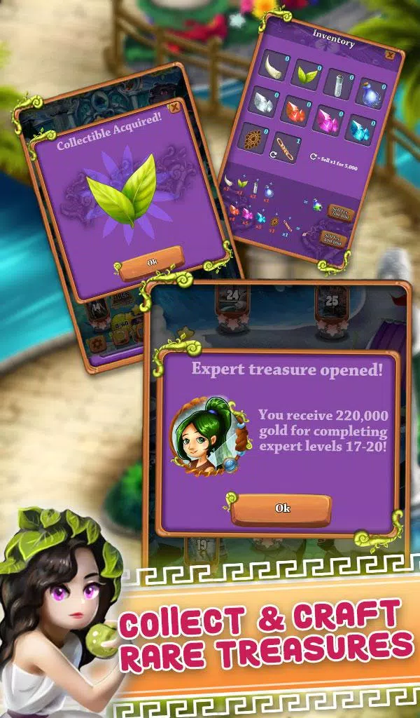 ♦️ 100+ Relaxing Levels: Explore multiple mythical lands including Poseidon’s Kingdom, the Sacred Pantheon, and the Tunnel of Hades.