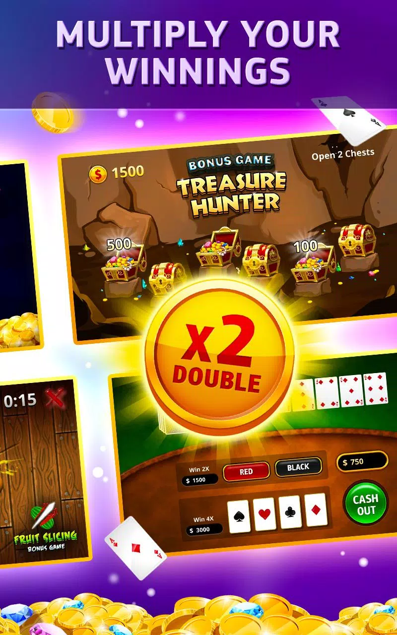 ♦️ Four Bonus Games: Play thrilling mini-games like Fortune Wheel, Treasure Hunter, Fruit Slicing, and Guess the Card to earn huge rewards.