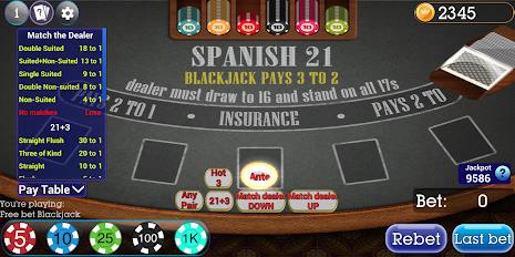 > Variety of Blackjack games including Spanish Blackjack > Free bet Blackjack, and more.