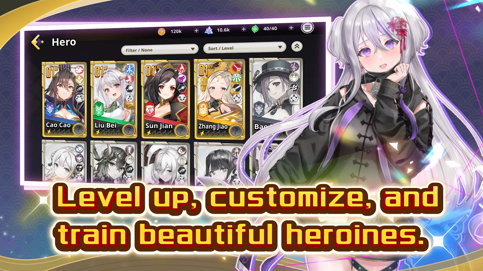 - Bishojo Customization: Customize heroes with presents, Guardians, Scrolls, and Regalia to suit your playstyle.