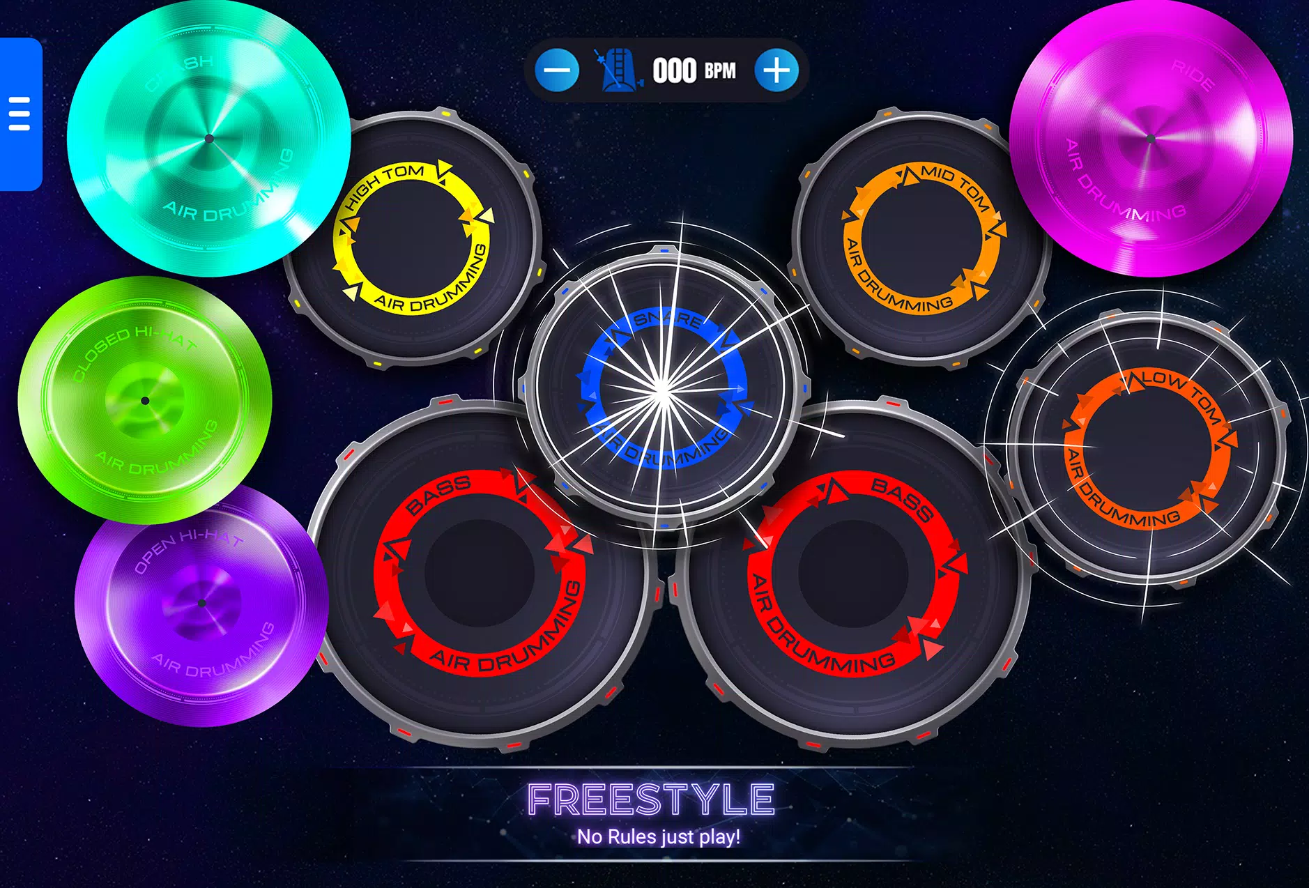 ⭐ Freestyle Drumming: Let your creativity flow with the Freestyle mode, where you can play virtual drums to your heart's content. Experiment with different beats and rhythms to create your unique sound.
