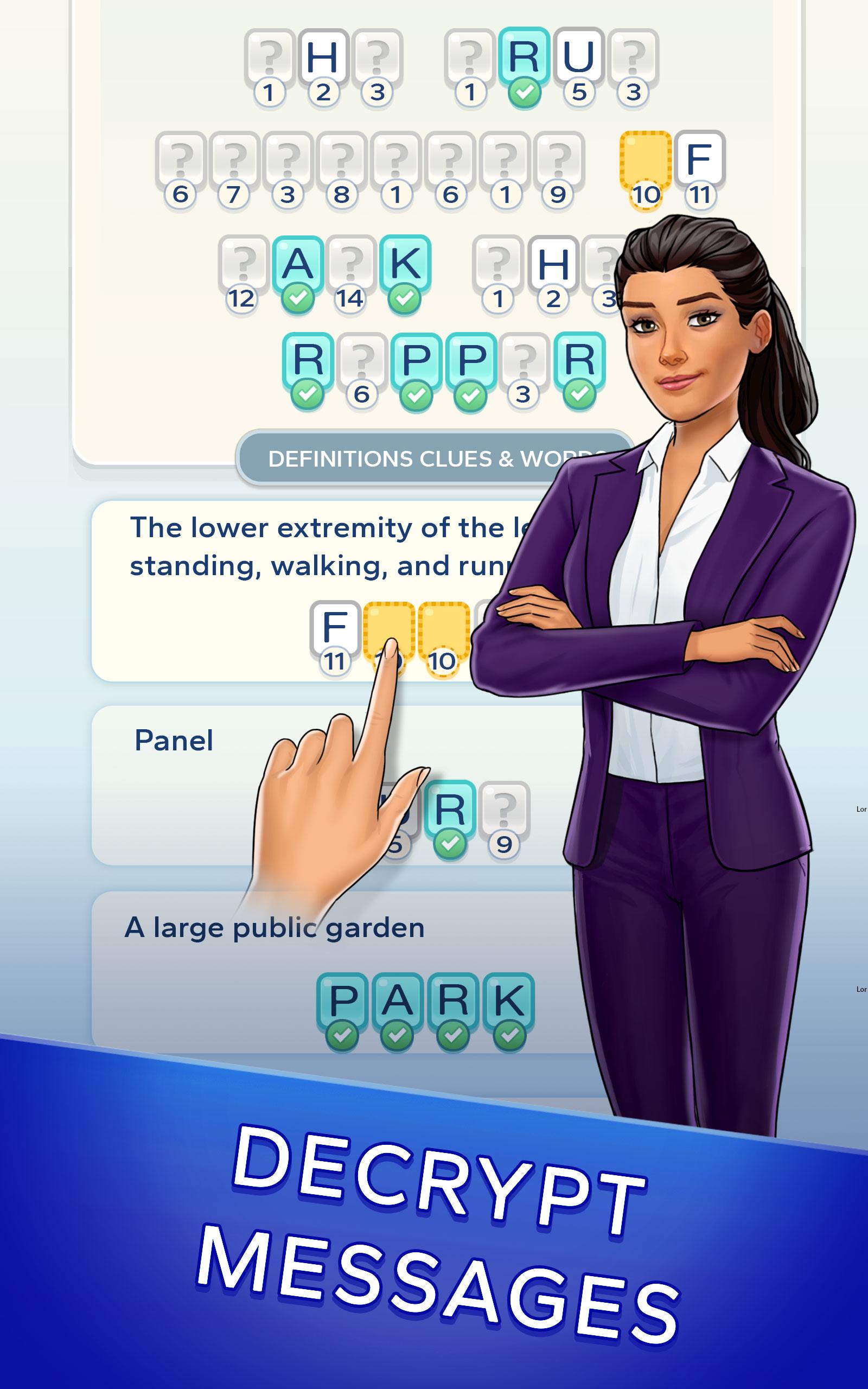 Step into the thrilling world of crime investigation with Cryptic. This captivating app will challenge you to decode cryptic crosswords and intricate cryptograms as you uncover the truth behind murder mystery stories. As a crime investigation reporter fighting to save your job, your choices matter in this interactive narrative filled with suspense, drama, and unexpected twists. Can you navigate the web of intrigue and solve the cryptic puzzles to shape your destiny? Download Cryptic now and immerse yourself in the excitement of solving cryptic challenges, engaging with rich narratives, and enjoying the best clue mystery games on your journey to becoming a master of crime story investigation.