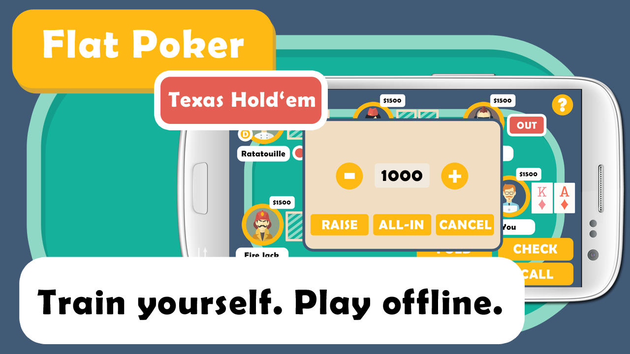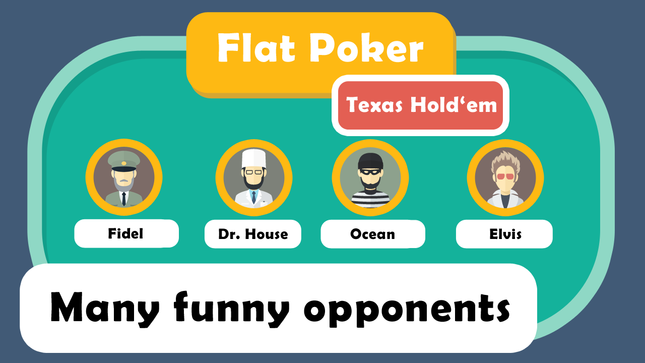 Flat Hold’em Poker Offline brings the classic Texas Hold’em experience to your mobile device wrapped in a sleek, modern flat-design interface. With no internet required, you can play anywhere, anytime. The clean UI, easy controls and variety of styled opponents make it ideal for casual players and those who want to sharpen their poker strategy without the pressure of real-money gambling.