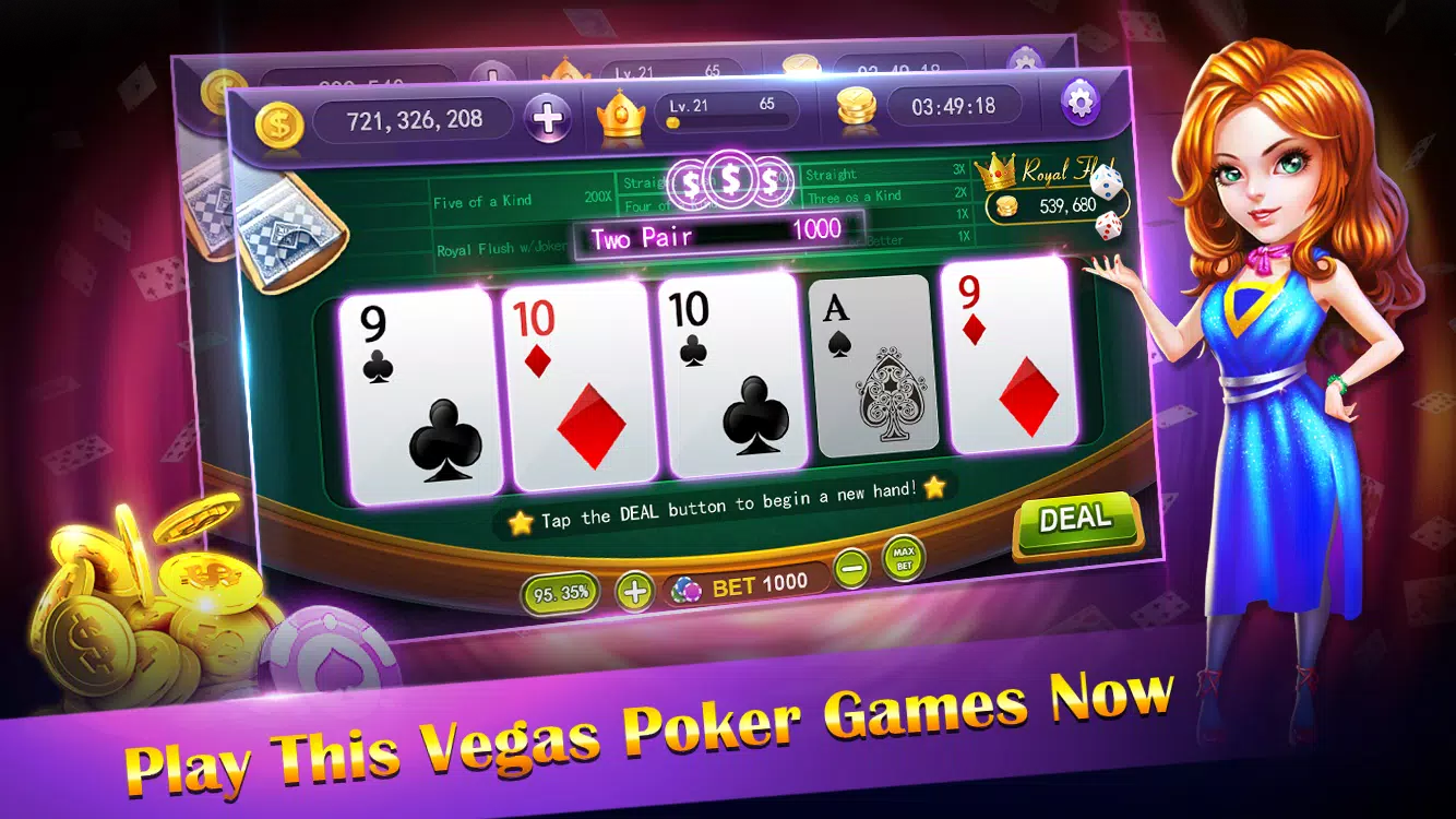 Video Poker – Vegas Casino Poker lets you experience the thrill of real Las Vegas casino action right from your Android device—anytime, anywhere. Whether you’re chasing a Royal Flush, mastering Deuces Wild, or perfecting your Jacks or Better strategy, this game blends authentic poker mechanics with the freedom to play offline or online. With free coins, realistic pay tables, and smooth gameplay, it’s the perfect mix of entertainment and skill training for poker lovers.
