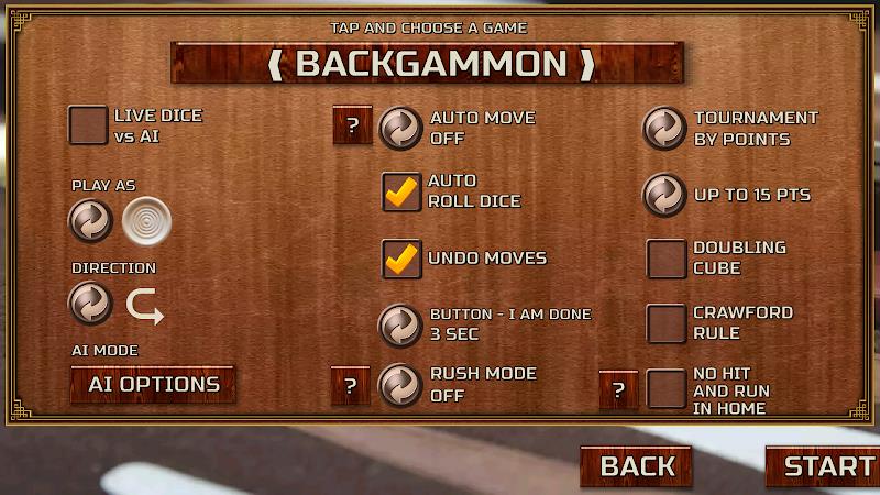 - Customization Options: Design your backgammon game with custom chips and starting positions. Tailor the game to your preferences and create a unique playing experience that suits your style.
